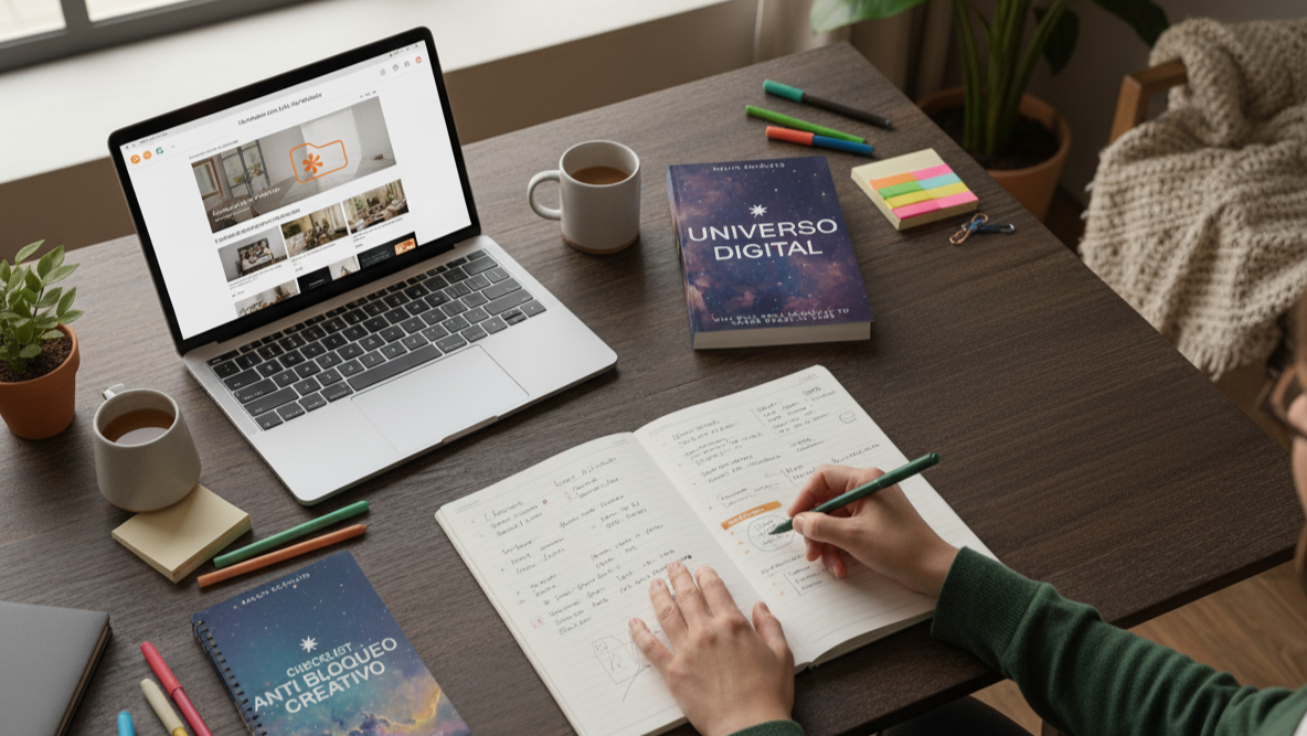 Justamente para eso está: el kit incluye disparadores y recordatorios que funcionan como un “anti-bloqueo creativo”, para que siempre tengas un próximo paso o idea fresca a mano.